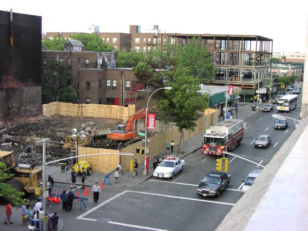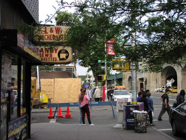 This was the scene at the corner of westbound Queens Boulevard and 46th Street in Sunnyside, Queens, New York, two days after a rip-roaring blaze disintegrated