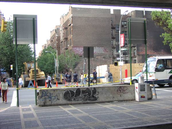 The cops are either protecting the site, or watching for jaywalkers, as back in 2001 this was still very much the Boulevard of Death, although for one fine June 2001 morning, it was more like the Boulevard of Hearth.